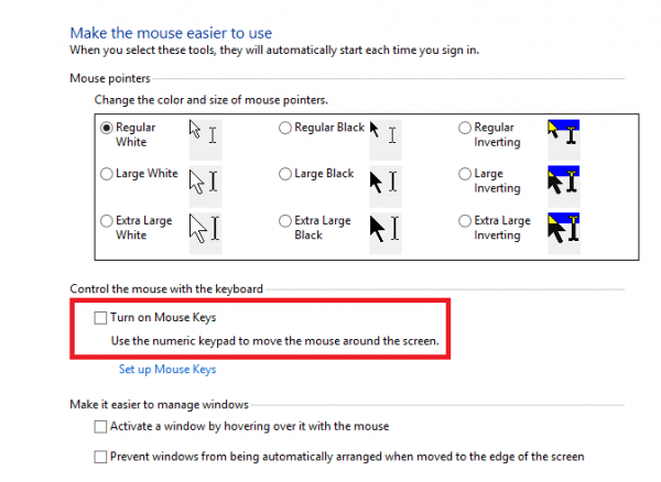 Turn on Mouse Keys-এ টিক তুলে দিয়ে ওকে করলে কিবোর্ড আর মাউসের মতো কাজ করবে না।
