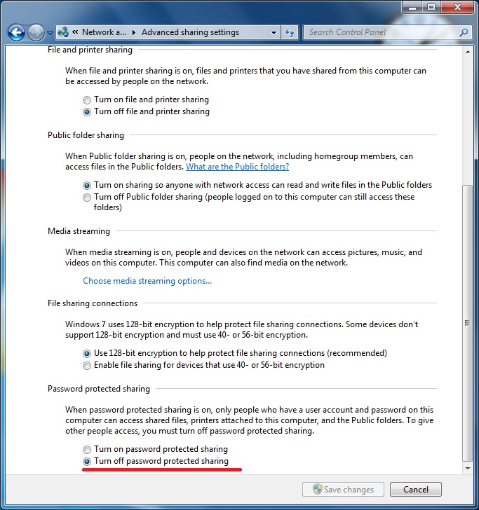 এরপর নিচের মত একটা Window আসবে৷ওখানে সবার নিচে Turn off password protected sharing চেকবক্সটা Active করে Save Settings এ ok করে বেরিয়ে আসুন ৷