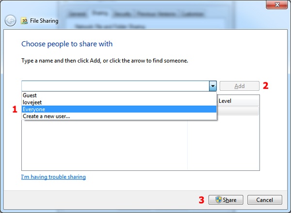 যে window টি আসবে সেখানে everyone select করে Add বাটান এবং তারপর share বাটান এ ক্লিক করুন ,নিচের চিত্র দেখুন ৷