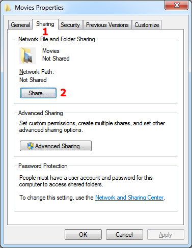 প্রথমে ল্যাপটপে wifi hotspot চালু করে নিন,এবার যে ফোল্ডার বা ড্রাইভে আপনার ভিডিও অডিও গান রয়েছে তার Propartise এ যান,sharing টাব select করে share বাটান এ ক্লিক করুন ৷