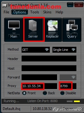 এবার দ্বিতীয় ট্যাব 'Server' এ ক্লিক করেন, দিয়ে Proxy- 10.10.55.34 আর তার পার্শের ঘর এ Port-8799 দিন।