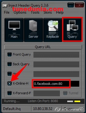 এবার ৪ নম্বর ট্যাব এ ক্লিক করেন, X-Online-H অপশন টা মার্ক করেন এবং সেখানে 0.facebook.com:80 দিন । সেভ করে স্টারট এ ক্লিক করুন । ব্রাউজারে কোন সেটিং করবেন না