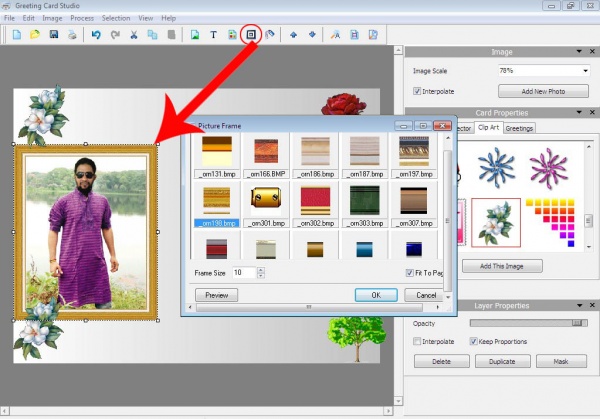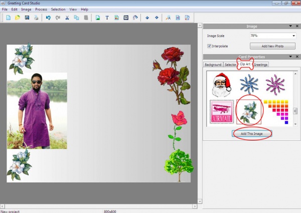 এবার ছবির চারপাশে Clip Art, দিতে হলে যে কোন Clip Art সিলেক্ট করে Add to Image বাটনে ক্লিক করুন ।