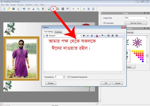 আর আপনার ঈদ কার্ডের মধ্যে কোন লেখা লিখতে হলে উপরের দেখা মত কাজ করুন ।