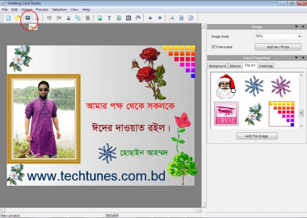 সবশেষ আপনার ঈদ কার্ড Save করতে সেভ বাটনে ক্লিক করে সেভ করে রাখুন ।