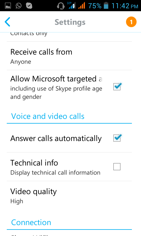 দেখেন লেখা আছে "voice and video calls" এ "Answer calls automatically " এইটা টিক মার্ক করে দিন । এখন আপনার হেলিকপ্টার যখন আপনার মোবাইল নিয়ে উড়ে বেড়াবে তখন আপনি জাস্ট অন্য একটা মোবাইল দিয়ে কোল কইরেন, দেখবেন আপনার কোল অটো রিসিভ হইয়া গেচে ! তাও কেমেরা সহ ! আপনার ডিফাল্ট কেমেরা যদি ফ্রন্ট কেমেরা হয় তাইলে মোবাইল ঘুরিয়ে দিতে হবে, মানে হেলিকপ্টারে বাধার সময় যে কেমেরা স্কাইপে ওপেন হয় ঐ কেমেরাটা নিচের দিকে করে বাধবেন। ব্যাস কাম শেষ ।