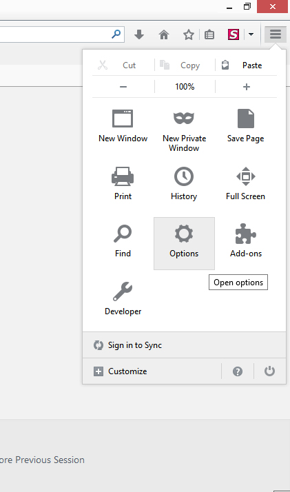 মজিলা ফায়ারফক্স চালু করুন। ডান পার্শের Open Menu তে ক্লিক করুন। এপর Options এ ক্লিক করুন।