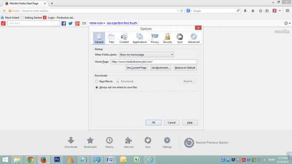 এরপর Firefox রিস্টার্ট দিয়ে অপেক্ষা করুন। দেখুন Firefox ওপেন হবার সময়ই আপনার সেট করা সাইটটি ওপেন হয়েছে।