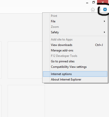 ইন্টারনেট এক্সপ্লোরার ওপেন করুন। ডান পাশের Tools বাটনে ক্লিক করুন। এরপর Internet Options সিলেক্ট করুন।