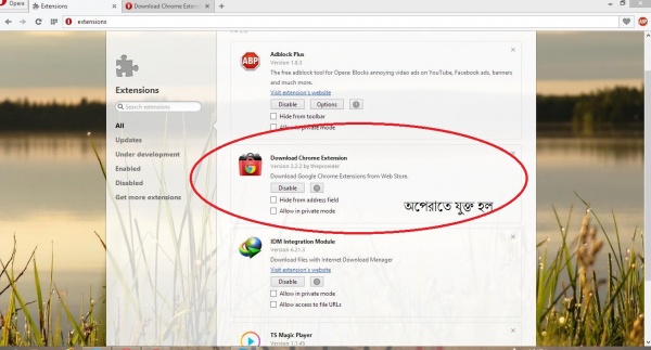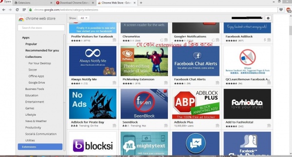 উপরের টপিক দেখেই বুজতাছেন যে কি করব, তারপরও বলি অপেরা তে আপনি যত extensions পাবেন তার ২গুন পাবেন ক্রমে। ক্রম এর extensions গুলো আমার অনেক পছন্দের কিন্তু আমার অপেরা এবং এক্সপ্লরার বেশি ব্যাবহার করি যার কারনে বুজতেই পারতাছেন । তাই গুগল এ সার্চ দিয়ে পেয়ে গেলাম এই পধতি ।