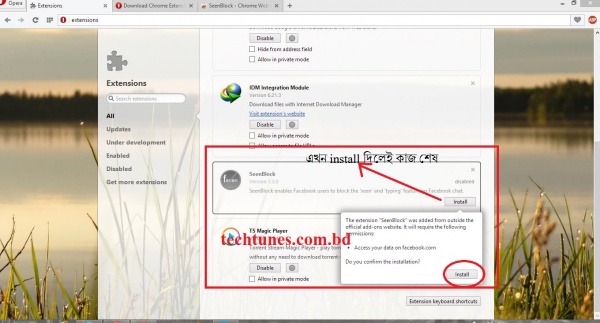 go তে ক্লিক করলেই অপেরার Extensions এ চলে যাবে ইন্সটল এ ক্লিক করুন আর চরম(ক্রম) র স্বাদ নিন অপেরাতে