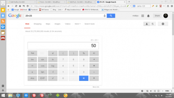 ৪।ক্যালকুলেটর হিসাবে গুগল সার্চ ইঞ্জিন ব্যবহার যায়।এর জন্য আপনাকে অনুসন্ধান বক্সে ২৫+২৫ লিখে সার্চদিতে হবে।এতে ৫০ প্রদর্শিত হবে.