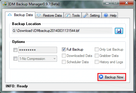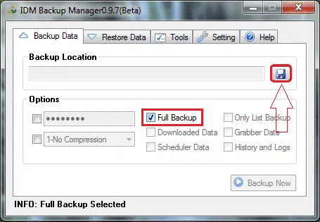 প্রথমে এই লিঙ্ক থেকে 1.5 MB এর জিপ ফাইলটি ডাউনলোড করে নিন ।এক্সট্রাক্ট করলে একটি সফটওয়্যার পাবেন ।সফটওয়্যারটি ইন্সষ্টল করার পূর্বে সিস্টেস ট্রে থেকে IDM Exit করে নিন অর্থাৎ IDM এর আইকনের উপর মাউস পয়েন্টার রেখে রাইট বাটনে ক্লিক করে Exit এ ক্লিক করুন ।এবার স্বাভাবিক ভাবে সফটওয়্যারটি ইন্সষ্টল করে ওপেন করুন । সফটওয়্যারটি ওপেন হলে “Full Backup” এ টিক দিয়ে তীর চিন্হিত জায়গায় ক্লিক করে পিসির যেখানে ব্যাকআপ ফাইলটা রাখবেন সেই ড্রাইভ অথবা ফোল্ডারটি দেখিয়ে দিন ।অবশ্যই “C” ড্রাইভ ব্যতিত অন্য যেকোন ড্রাইভে অথবা ফোল্ডারে সেভ করবেন যাতে অপারেটিং সিস্টেম পাল্টালেও ফাইলটি ব্যবহার করা যায় ।চিত্রগুলি লক্ষ্য করুন বুঝতে সুবিধা হবে ।