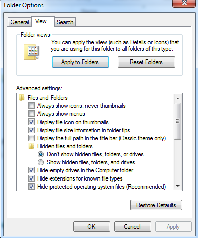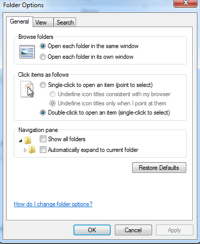 হুম। এরপর Folder and search options এ ক্লিক করুন। দেখুন এরকম একটা উইন্ডো আসবে।