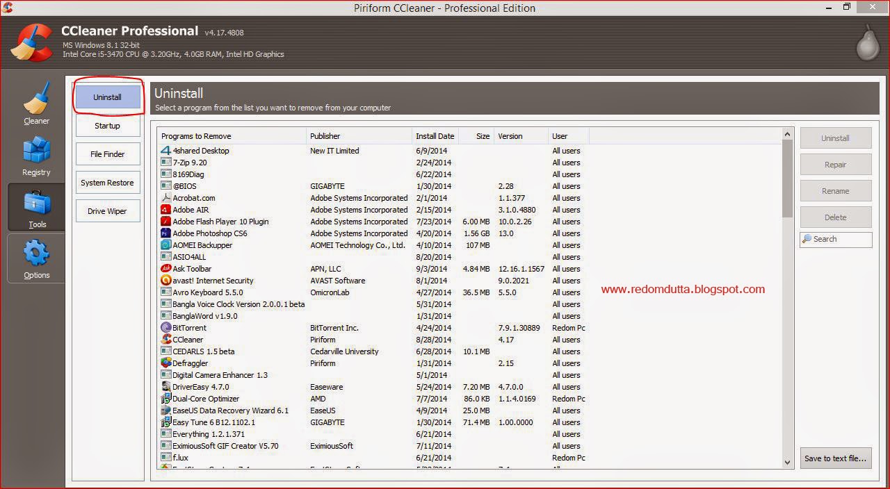 Uninstall :এইখান থেকে আপনি আপনার সিস্টেম এর আপ্রয়োজনই সফটওয়্যার আনইন্সটল করতে পারেন। নিচের মত