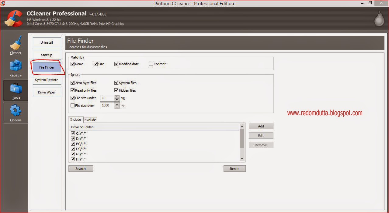 আপনার নির্বাচিত কোন ফোল্ডারের ভিতরের সব ফাইল বা বিশেষ এক্সটেনশন যুক্ত ফাইল গুলো মুছে ফেলতে, তাহলে Options > Include এ গিয়ে তা করতে পারবেন।