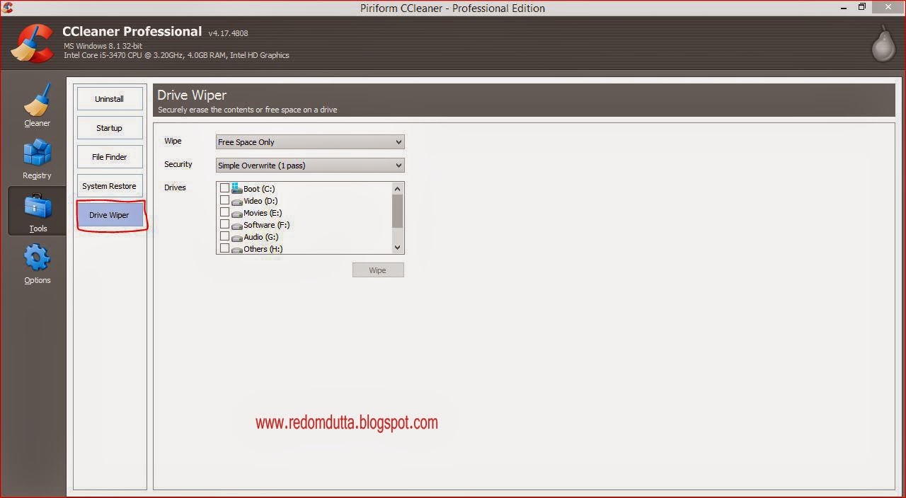 Drive Wiper: এই option টি দিয়ে আপনি আপনার হার্ডড্রাইভ এর পার্টিশন এর জায়গা বারাতে পারেন। এইখানে আমি হার্ডড্রাইভ এর পার্টিশন এর জায়গা বাড়াতে পারবেন মানে মনে করুন আপনার C ড্রাইভ এর জায়গা ৫০জিবি আপনি c ড্রাইভ এ কোন ফাইল রাখেননি তাঁর পরও আপনাআপনি জাইগা বেড়ে গিয়েছে।সেইক্ষেতরে আপনি Drive Wiper অপশনটি ব্যবহার করতে পারেন।যে ড্রাইভটি Wiper করতে চান সেটি সিলেক্ট করে Wiper বাটন এ ক্লিক করুন।হার্ডড্রাইভ এর সাইজ পরিমাণ সময় লাগতে পারে।
