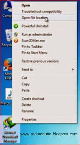 কপি করে সফটওয়ারটি আপনি যে ড্রাইভ এ ইন্সটল করেছেন। সেই খনে পেস্ট করুন। সম্ভবত C Drive এ ইন্সটল করেছেন। ডেক্সটপ এ আইডিএম আইকনটিতে রিহত ক্লিক করে।ওপেন ফাইল লোকেশন এ ক্লিক করুন।নিচের মত