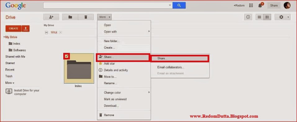 Folder টি সিলেক্ট করে নিচের মত শেয়ার এ ক্লিক করুন