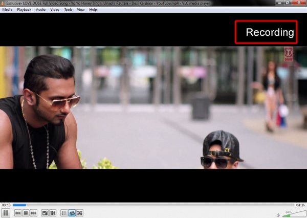 প্রথমে আপনাকে ওই ভিডিওটা চালু করতে হবে যেইটাকে কাতবেন। (VLC Media Player দিয়ে চালু করবেন)। তারপর Shift+R চাপুন। তাহলে নিচের স্ক্রিনসট এর মত ভিডিওর উপরের কোনায় Recording লেখা দেখতে পাবেনঃ