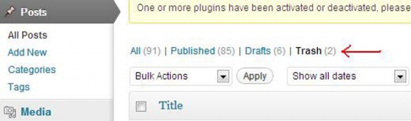 কোন ব্লগ ডিলিট হয়ে গেলে টা খুঁজার সবচে সহজ উপায় হচ্ছে Trash. ড্যাশবোর্ডের পোস্ট অপ্সনে গেলেই এই Trash অপশন পেয়ে যাবেন। তার পরও নিচে একটা ছবি দিলাম।