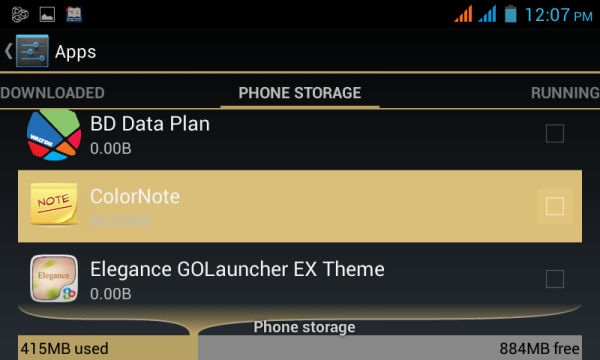 পর্দার বাঁয়ে বা ডান দিকে টেনে ডাউনলোডেড, এসডি কার্ড, রানিং অথবা অল—এই কয়টি বিভাগে অ্যাপগুলো পাওয়া যাবে। নির্দিষ্ট অ্যাপটি চাপলে অ্যাপ ইনফো নামে একটি পর্দা আসবে। এখানে অ্যাপের কারিগরি বর্ণনা থাকবে। যেমন: অ্যাপের সংস্করণ, অ্যাপটি কতটুকু জায়গা দখল করে আছে ইত্যাদি। একটু নিচে ক্যাশ অংশে ক্লিয়ার ক্যাশ বোতামটি চেপে ওই অ্যাপের ক্যাশ মেমোরি মুছে দিন।