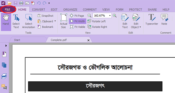 ১ম ধাপঃ নিচের চিত্রে দেখানো ফাইল (File) অপশনে ক্লিক করুন।