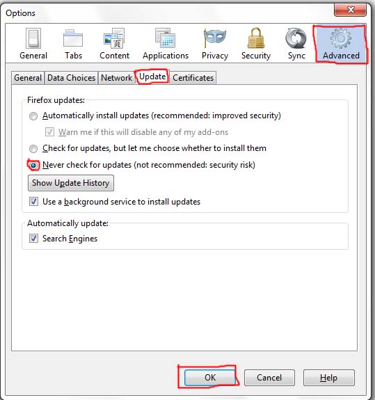 প্রায় চার মাস আপনাদের থেকে অনেক দূরে চলে গিয়েছিলাম। ভাল লাগছিলনা তাই আবার চলে এলাম আপনাদের কাছে। সাথে একটি ইম্পর্টেন্ট টিউন নিয়ে। আমরা অনেকেই ইউটিবের ভিডিও ডাউনলোড করতে গিয়ে সমস্যায় পড়ে থাকি বা ডাউনলোড করতেই পারিনা। আবার ফেজবুকের ভিডিউতো আরো মোহা ঝামেলার। উল্লেখিত সমস্যার একদম সহজ সমাধান নিয়েই আজকের টিউনটি আপস্থাপন করলাম। প্রথমে আমার দেওয়া ফায়ারফক্সটি ডাউনলোড করুন এখানে ক্লিক করে। তারপর আগের ফায়ারফক্সটি আনইন্সটল করে এখন ডাউনলোড করাটি ইন্সটল করুন। তারপর ফায়ারফক্সের অটো আপডেট বন্ধ করে দিন। যারা অটো আপডেট বন্ধ করতে পারেননা তাদের জন্য বলছি, প্রথমে টুলসে ক্লিক করে অপশনে যান তারপর এডভান্সে গিয়ে নিচের ছবিটার মত সেটিংস করে দিন...................