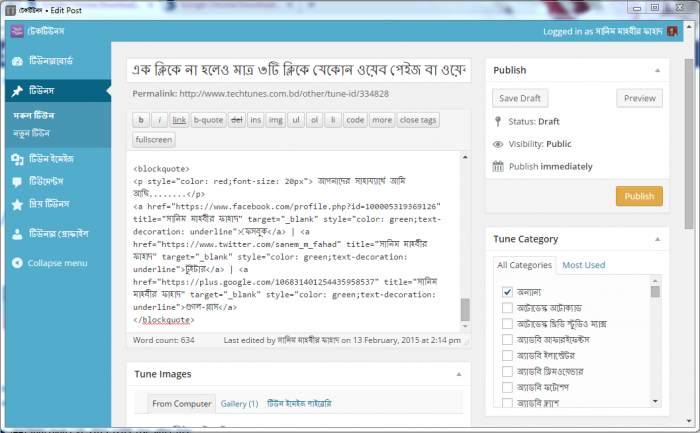আমি সানিম মাহবীর ফাহাদ। সুপ্রিম টিউনার, টেকটিউনস, ঢাকা। বিশ্বের সর্ববৃহৎ বিজ্ঞান ও প্রযুক্তির সৌশল নেটওয়ার্ক - টেকটিউনস এ আমি 12 বছর 11 মাস যাবৎ যুক্ত আছি। টেকটিউনস আমি এ পর্যন্ত 176 টি টিউন ও 3500 টি টিউমেন্ট করেছি। টেকটিউনসে আমার 160 ফলোয়ার আছে এবং আমি টেকটিউনসে 0 টিউনারকে ফলো করি।