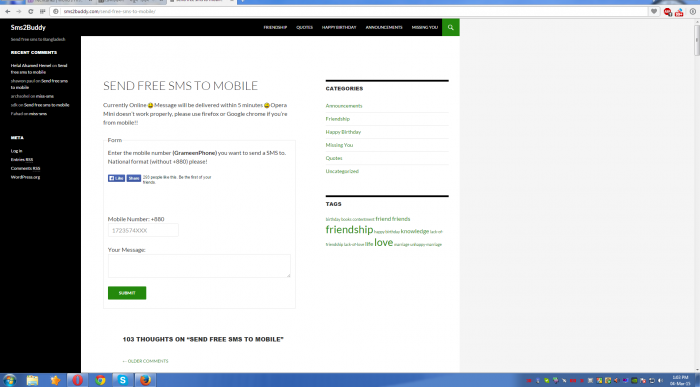 তারপর যে মোবাইলে SMS টি পাঠাবেন সেই ফোনের নাম্বার দিন। SMS এর টেক্সট দিন। তারপর SMS টি পাঠিয়ে দিন । ব্যস!!!