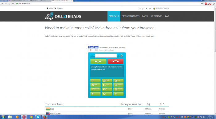 সাদা রঙয়ের বাক্সের বাম পাশের মেনু থেকে দেশ সিলেক্ট করুন। তারপর সাদা বক্সে যে নাম্বারে কল করবেন তার নাম্বার দিন। তারপর কল করুন। মাইক্রোফোন অ্যাক্সেস নিতে চাইলে এনাবল করুন। এর মাধ্যমে আপনি দৈনিক মাত্র ১ মিনিট কথা বলার সুযোগ পাবেন।