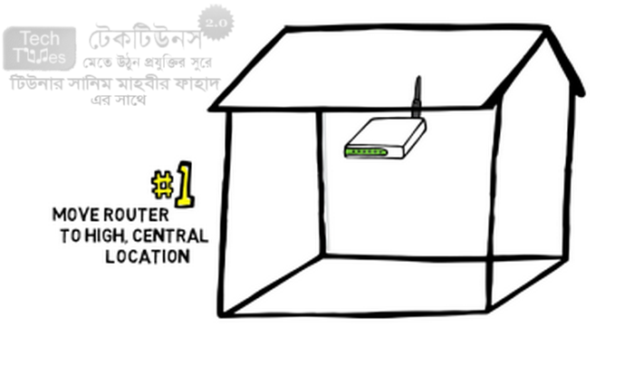 আমরা সাধারনত ওয়াই-ফাই রাউটার ফ্লোরে, আমাদের লিভিং রুম বা অফিসের কোণায় বা টেবিলের উপর রাখি। যা সত্যিকার অর্থেই সিগনাল ট্রানমিশনের জন্য খুব নাজুক অবস্থা। আপনি হয়তো দেখেছেন যখন আমাদের কারো ফোনে নেটওয়ার্ক থাকেনা কিংবা আমরা যখন এফএম রেডিও শুনি তখন যদি দুর্বল সিগনাল থাকে তাহলে আমাদের সেল ফোনটাকে যতোটা সম্ভব উঁচুতে রাখার চেষ্টা করি। কারন এটাই হলো সিগনাল পাওয়ার সঠিক পদ্ধতি। তাই ঠিক একই পদ্ধতিতে আমাদের ওয়াই-ফাই রাউটারটিকে যতোটুকু সম্ভব উঁচুতে রাখতে হবে এবং অবশ্যই সেটাকে বাসার ঠিক মাঝামাঝি জায়গায় রাখতে হবে। যাতে বাসার বাকি অংশগুলো থেকে সমানভাবে সিগনাল পাওয়া যায়।