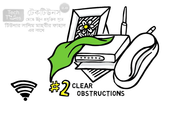 সব সময় যে আপনি ওয়াই-ফাই রাউটারকে একদম ঘরের ছাদের কাছাকাছি রাখতে পারবেন এরকমটা ভাবছি না। আপনি হয়তো কোন আসবাবের উপরে আপনার রাউটারটিকে রাখতে পারেন। কিন্তু রাউটার যেখানেই রাখুন সব সময় আপনাকে মনে রাখতে হবে এর চারপাশ যেন নির্ঝঞ্ঝাট থাকে। সব সময় মনে রাখতে হবে আপনার ওয়াই-ফাই রাউটারের আশে পাশে যদি অন্যকোন ডিভাইস যেমন, মোবাইল ফোন, রেডিও, টেলিভিশন, মাইক্রোওয়েভ, বা কোন পরিবাহী তার থাকে তাহলে সেটি আপনার ওয়াই-ফাই সিগনালকে ব্যাহত করতে পারে। সুতরাং শক্তিশালী সিগনাল পেতে হলে রাউটারের চারপাশে কোন কিছু রাখা চলবে না।