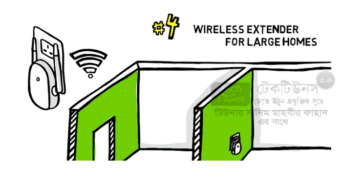 এতোক্ষণ যে তিনটি পদ্ধতি বর্ণনা করলাম এগুলো আপনি নিজে নিজেই প্রয়োগ করতে পারবেন। কিন্তু আপনার বাসা যদি অনেক বেশি আয়তনের হয় তাহলে কষ্ট করে ওয়াই-ফাই এক্সটেন্ডার ব্যবহার করুন। এই ওয়াই-ফাই এক্সটেন্ডার মূলত ওয়াই-ফাই সিগনালকে গ্রহণ করে আবার সেটাকে পূর্ণ শক্তিতে ট্রান্সমিট করে। যদিও খুব বেশি দুরত্বে ব্যবহার করলে এটার শক্তি একটু কমে যায় তবুও না পাওয়ার চেয়ে সামান্য কিছু পাওয়া একেবারে মন্দ না।