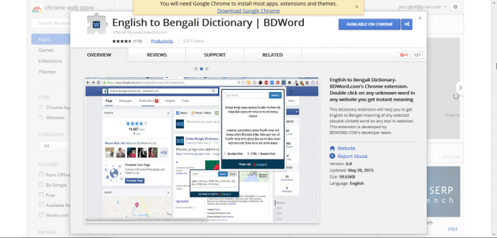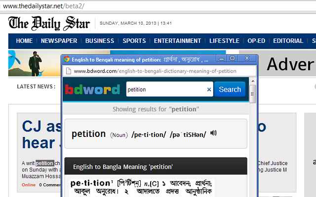 আমরা যখন কোন ইংরেজি শব্দের অর্থ (ইন্টারনেট ব্যবহার করার সময়) খুজে পায়না তখন কোন ডিকশনারি দেখি বা তা না হলেও Google Translate ব্যবহার করি ঐ শব্দের অর্থ খুজে বের করার জন্য। এ ক্ষেত্রে দেখা যায় একবার ডিকশনারিতে যাই আবার তাতে না হলে Google Translate এ (যদিও Google Translate এ সব ইংরেজি শব্দের অর্থ খুজে পাওয়া যায়)