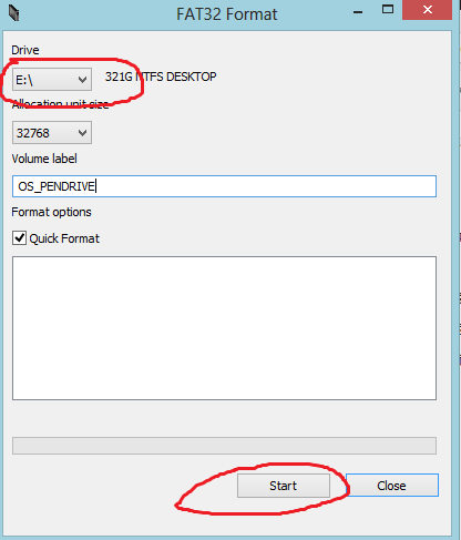 ৩. এবার ইন্টারফেস পাবেন লক্ষ্য করুন আপনার পেন্ড্রাইভের লেটারটি নির্বাচন করুন। ধরুন এটি E ড্রাইভ তাহলে ড্রপ ডাউন থেকে E নির্বাচন করুন।
