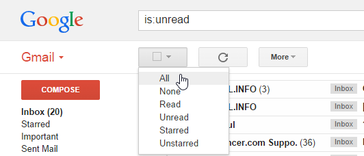 আরেকটি বিষয় আমি যখন প্রথম এটি ব্যাবহার শুরু করি আমার জিমেইলে ইনবক্সে আনরিড ইমেইল সংখ্যা ছিল প্রায় হাজার খানেক। তাই নতুন মেইল আসলে বুঝতেও পারতাম না। তাই সমস্যা হত। আপনারও যদি একি সমস্যা হয় তাহলে আপনি খুব সহজেই সকল আনরিড ইমেইল এক ক্লিকে রিড করে নিতে পারেন। এজন্য আপনি আপনার জিমেইলে ডিফল্ট ভাবে লগিন করুন (নরমাল HTML মুডে না কিন্তু), এর পরে সার্চবক্সে টাইপ করুন is:unread এবার বক্স থেকে সব সিলেক্ট করুন এবং একটি লিঙ্ক আসবে “Select all conversations that match this search” এবার More থেকে mark as read সিলেক্ট করলেই কাজ শেষ হয়ে যাবে।
