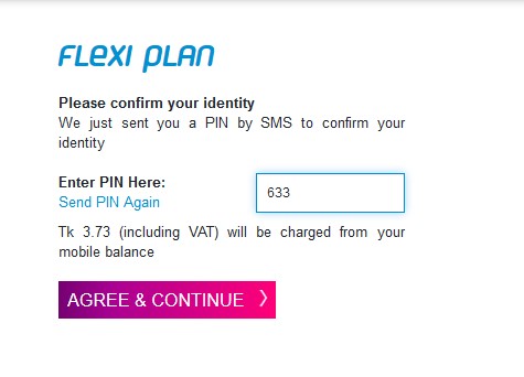 এবার আপনি একটি পিন নম্বর সহ এস এম এস পেয়ে যাবেন যা নিচের পেজ এ ব্যবহার করবেন
