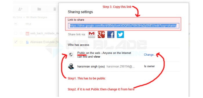 গুগল ড্রাইভ হলো বর্তমান সময়ে সবচেয়ে জনপ্রিয় ফাইল শেয়ারিং প্লাটফর্ম। গুগল ড্রাইভ গুগল এর একটি সেবা বিধায় এটা নিয়ে বেশি কিছু বলার প্রয়োজন আছে বলে মনে হচ্ছেনা। একটা গুগল ড্রাইভে প্রায় ১৫ গিগাবাইট ডাটা ফ্রি পাওয়া যায়। যাহোক, ডাইরেক্ট ডাউনলোড লিংক তৈরীর জন্য নিচের নির্দেশনা অনুসরন।
