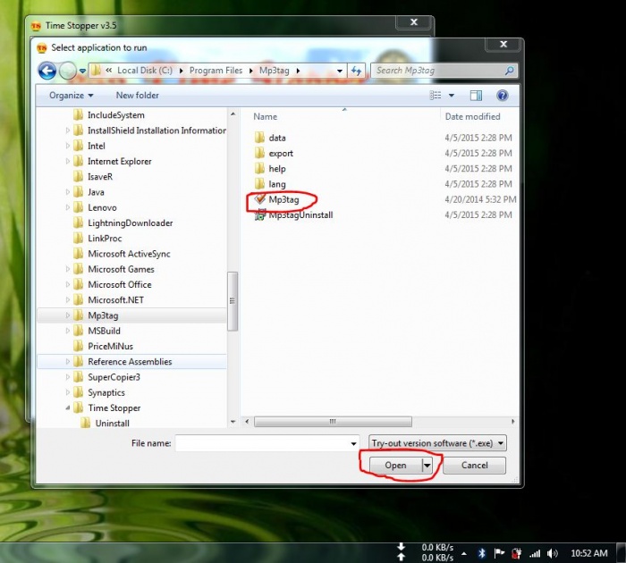 এবার প্রোগ্রাম ফাইল থেকে যে সফটওয়্যারটির টাইম ওয়ার্নিং দিচ্ছে সেটার .EXE ফাইল টি সিলেক্ট করে Open এ ক্লিক করুন।