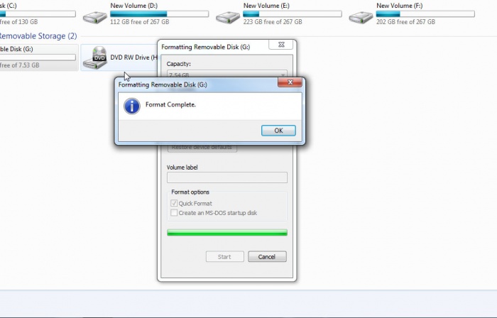 file system পরিবর্তন করার পর Start এ ক্লিক করলে Format Complete দেখাবে।