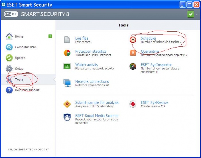 প্রথমে ইসেট এন্টিভাইরাস অন করে নিচের ছবির মত অপষনে আনুন এবং tools অপশন চাপুন।