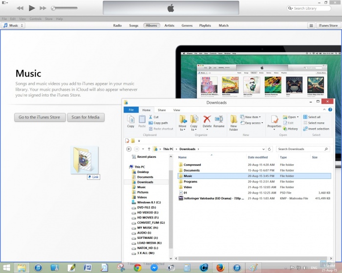 2: তার পর আপনার হার্ড ডিস্কে থাকা যেকোনো অডিও ফাইল বা অডিও ফোল্ডার i tunes page এ ছেড়ে দিন।