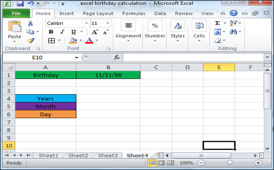প্রথমে একটা Excel sheet open করি। Excel sheet এ নিচের মত করে নিজের birthday টা বসায়।