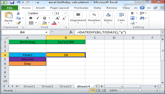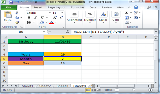 B1 কলামে birthday আছে, তাই equation টিতে B1 হচ্ছে birthday