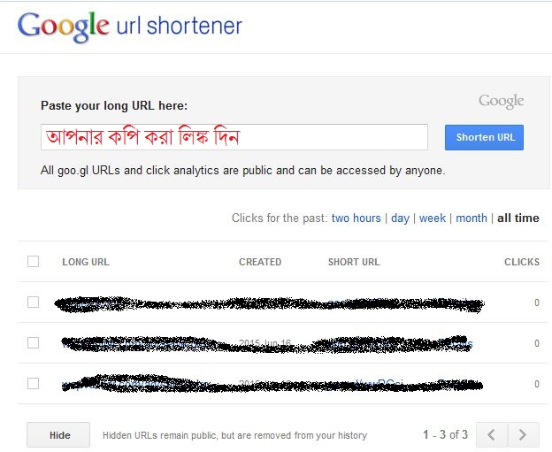 আপনি চাইলে goo.gl সাইটে গিয়ে আপনার জিমেইল একাউন্ট ব্যবহার করে লিঙ্কটি ছোট করে নিতে পারেন।তার জন্য এখানে যান... তাহলে নিচের মত পেজ পাবেন।