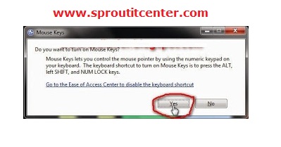 এবার tab বাটন চেপে yes সিলেক্ট করে এন্টার চাপুন পুরো বিষয়টা উপরের চিত্রের মতো হবে। এবার কিবোর্ড এর num Lock, on করুন, এবার num lock এর অন্তর্ভুক্ত থাকা বাটন গুলো চাপ দিয়ে দেখুন আপনার কিবোর্ডটি মাউসে