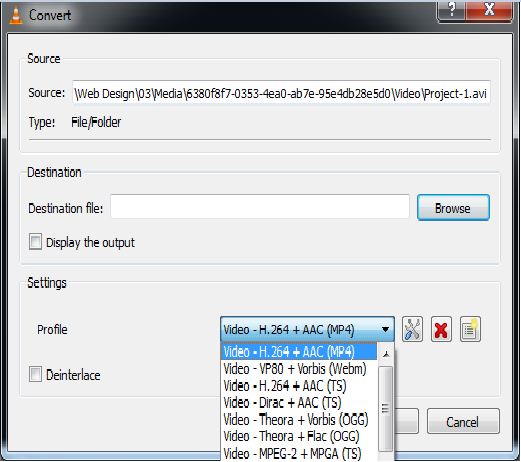 VLC media converter এ ফরম্যাটগুলো সাপোর্ট করে তার লিস্টঃ