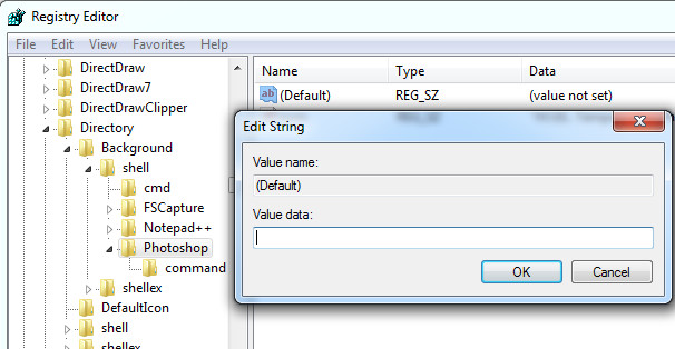 Photoshop সিলেক্ট করুন। right-click করে "New > string value" সিলেক্ট করুন। নিজের আইকনের একটি নাম দিন। (আমি এখানে দিলাম "icon ")