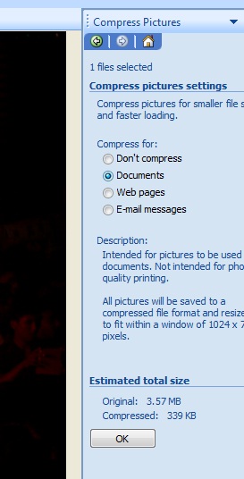 compress এ ক্লিক করার পর একটি সাইডবার ওপেন হবে। প্রথমে ওখানে নিচের ছবির মতো Documents এ ক্লিক করবেন। এর পরে OK ক্লিক করে save করে নিবেন।